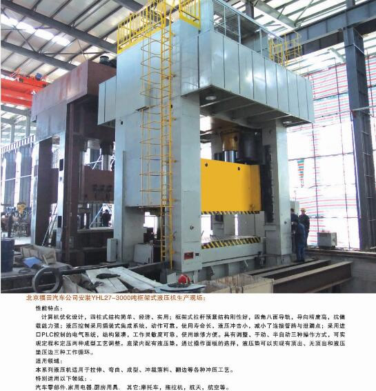 公司能夠為市場提供42大類500余個品種的標準液壓機和非標專用、精密伺服液壓機。產(chǎn)品廣泛應用于汽車、航天、粉末冶金、船舶、輕工、建筑、電子、家用電器等行業(yè),并代表著我國通用液壓機的發(fā)展水平。公司生產(chǎn)、設(shè)計、開發(fā)的液壓機產(chǎn)品完全能夠滿足國內(nèi)不同用戶多層次的需要。